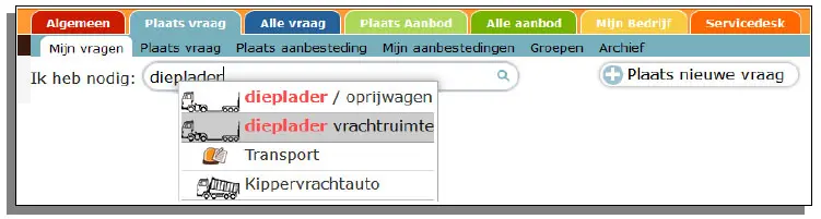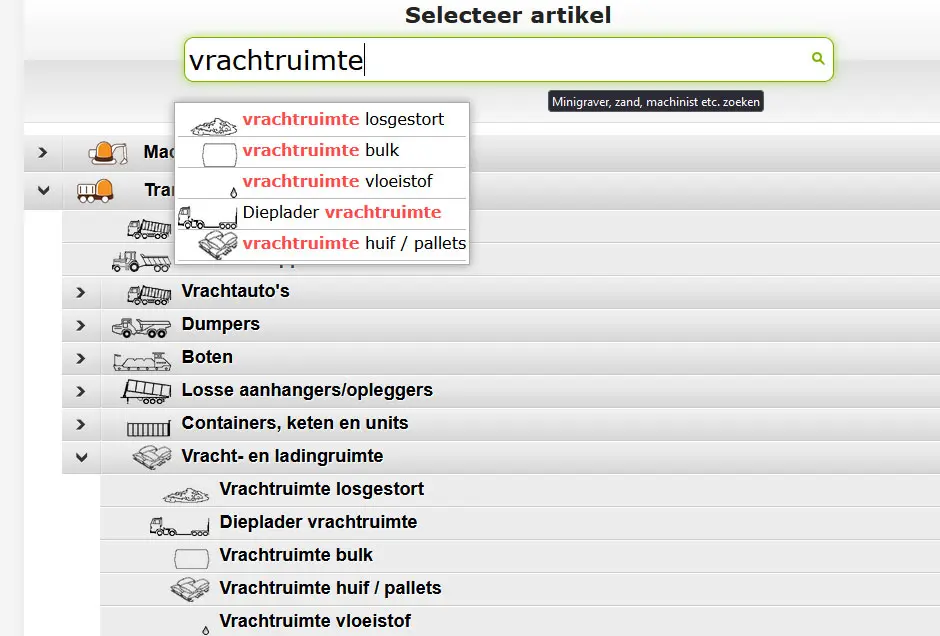 2. Vul in wat je zoekt, bijvoorbeeld dieplader