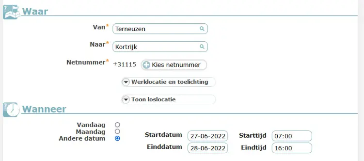 Er moet iets vervoerd worden en het gaat om een enkele rit. Je wilt weten wie wanneer desbetreffende route aflegt.
